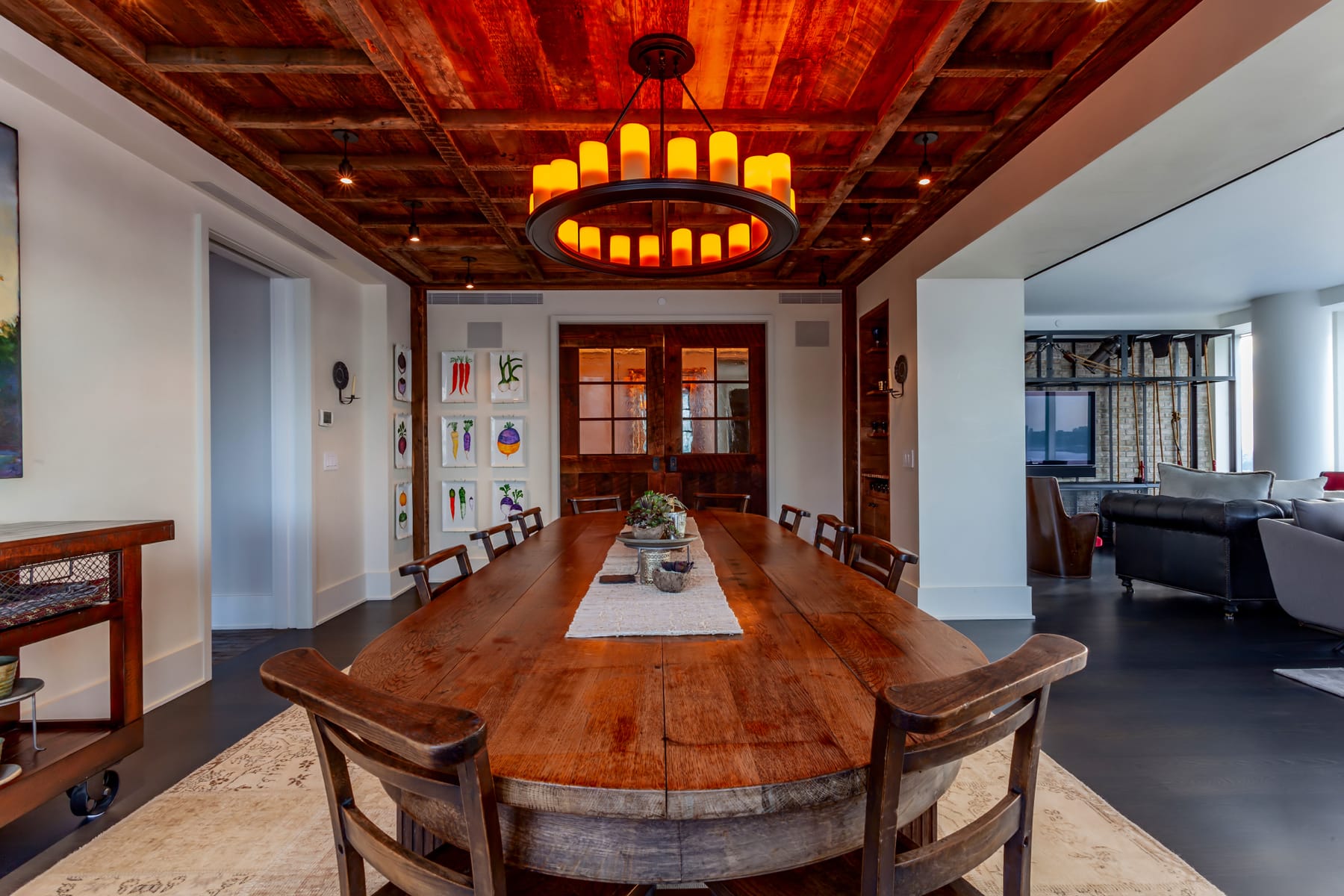 - This unique 4 bedroom, 4.5 bath gut renovation included a chef's kitchen with a stamped white-tin-ceiling, spectacular dining room with a reclaimed wood ceiling, pocket doors and recessed wine cabinet. The most spectacular entrance we had a pleasure to work on features powder room hidden in the theater ticket booth, beautiful golden leaf ceiling and the red carpet.